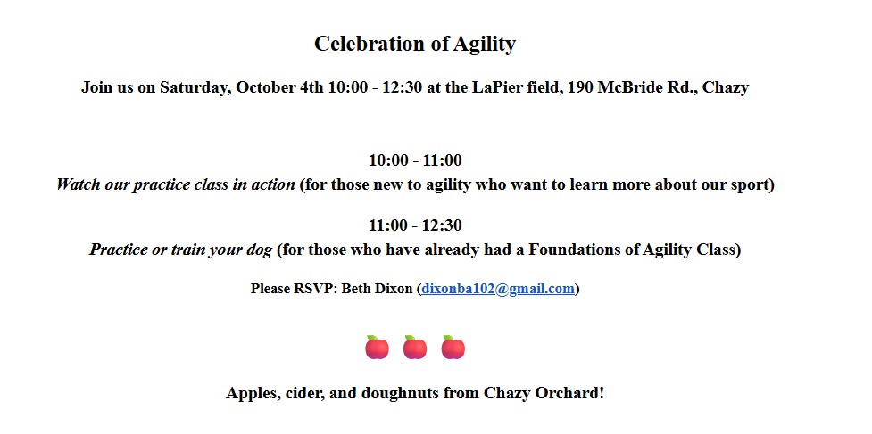 The Clinton County Canine Club is dedicated to helping the general public train their dogs to be good canine citizens. We focus on promoting responsible dog ownership and participation in activities with dogs of all breeds. The Clinton County Canine Club (CCCC) is a not for profit organization whose members promote three main objectives of the Club: